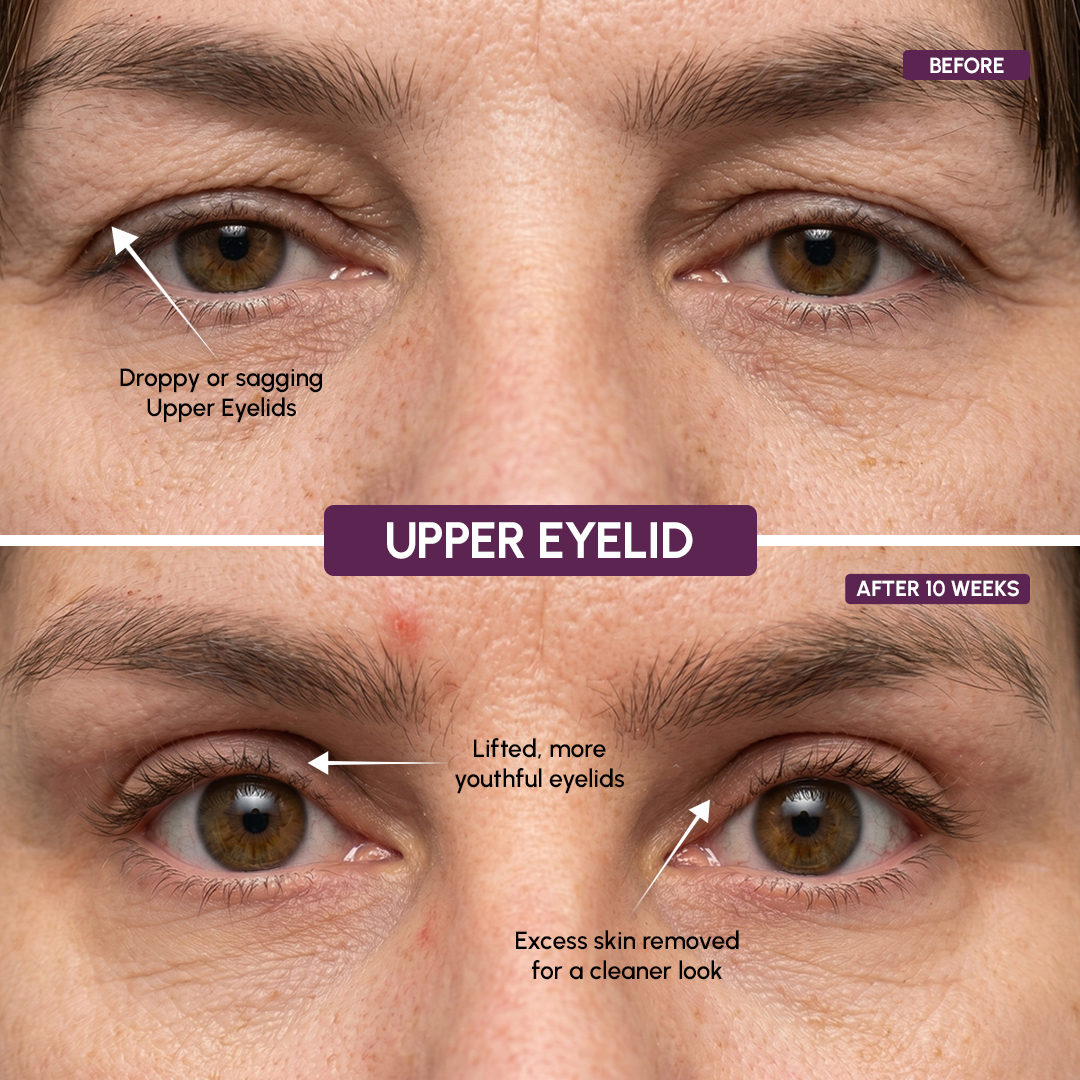 Ideal for adults with sagging or heavy upper eyelids seeking a surgical solution for aesthetic and functional improvement.
