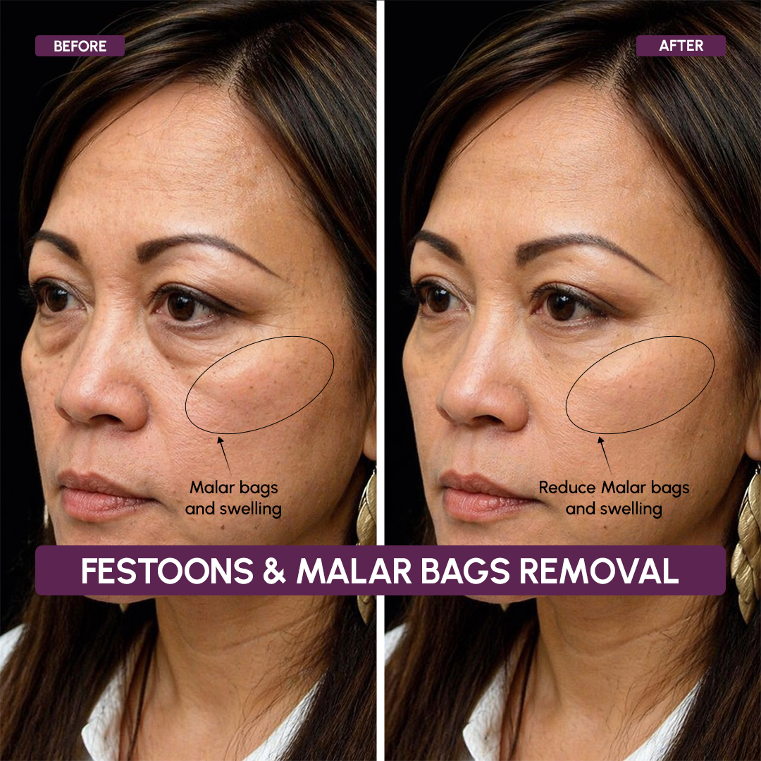 Swelling and bruising subside in 1-2 weeks, revealing smoother, firmer under-eyes.